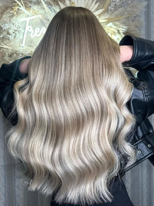 In French, ombré means “shade” or “shadow.” In the hair colour world, ombré is a dramatic, two-toned hair colour effect that is typically darker at the top and lighter on the bottom. Often the dark, top section is your natural hair colour shade and the bottom section is lightened with hair lightener. You can also have your Natural hair at root tinted to darken or lighten, and have toners on the ends.